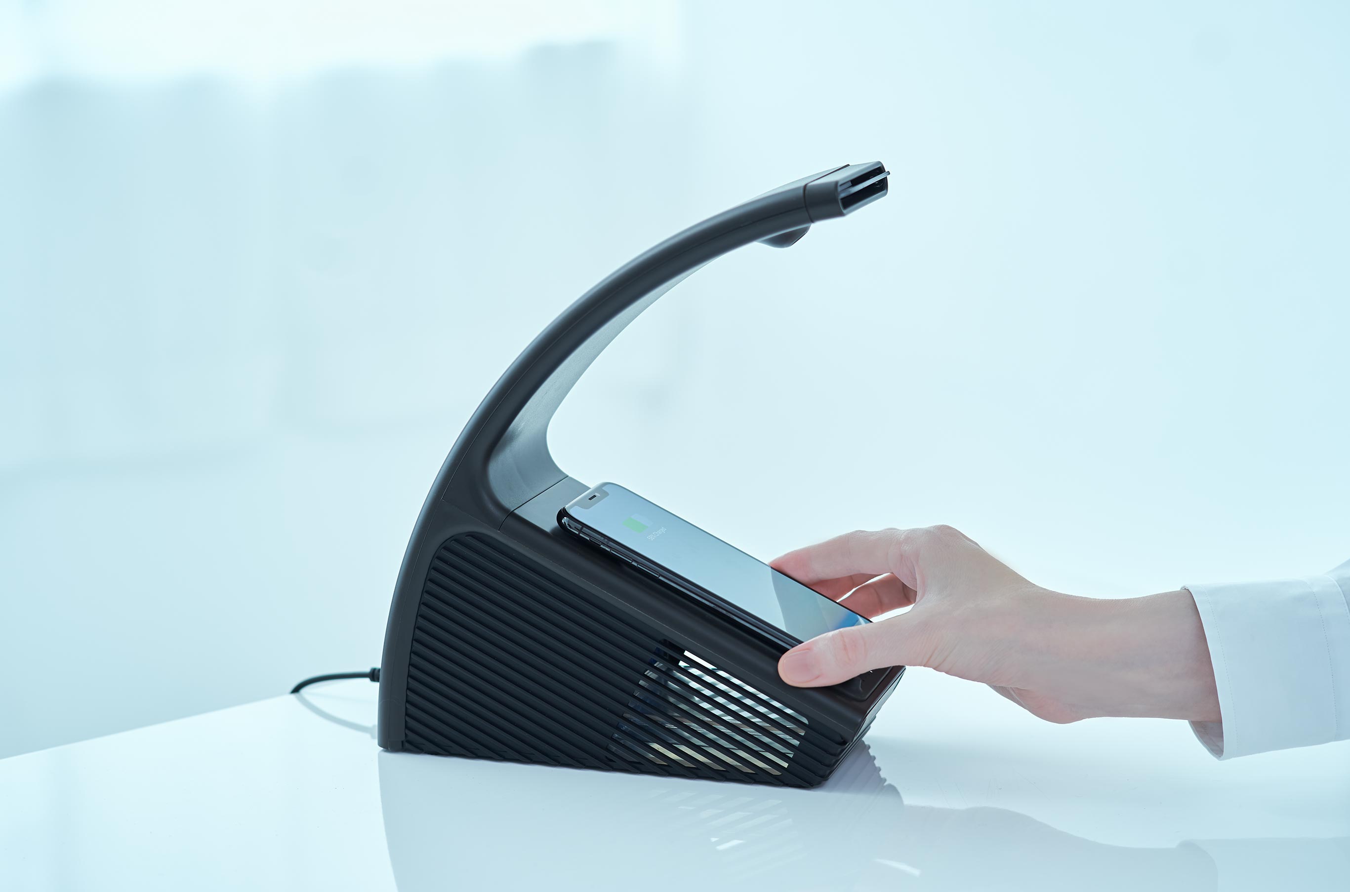 パーソナル加湿器(アロマディフューザー)・ワイヤレス充電台・照明を必然的に一体化。