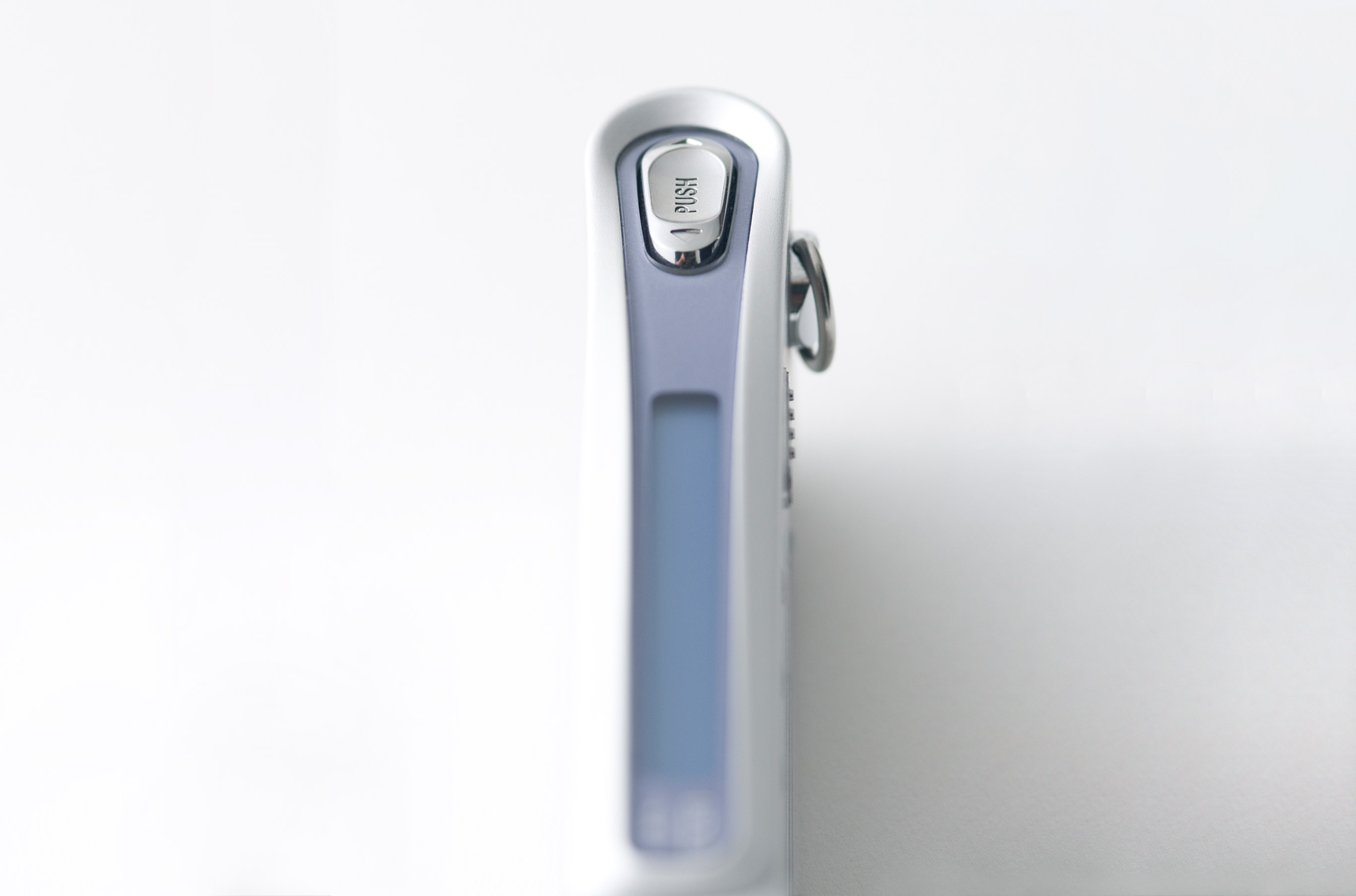 The convex surface around the LCD and the concave surface around the buttons are continuously changed to satisfy the conflicting requirements of “difficult to be pressed unexpectedly and easy to be pressed intentionally. The result is a beautiful continuous surface and a smaller body. The deep-drawing aluminum technology provides both a luxurious feel and strength.