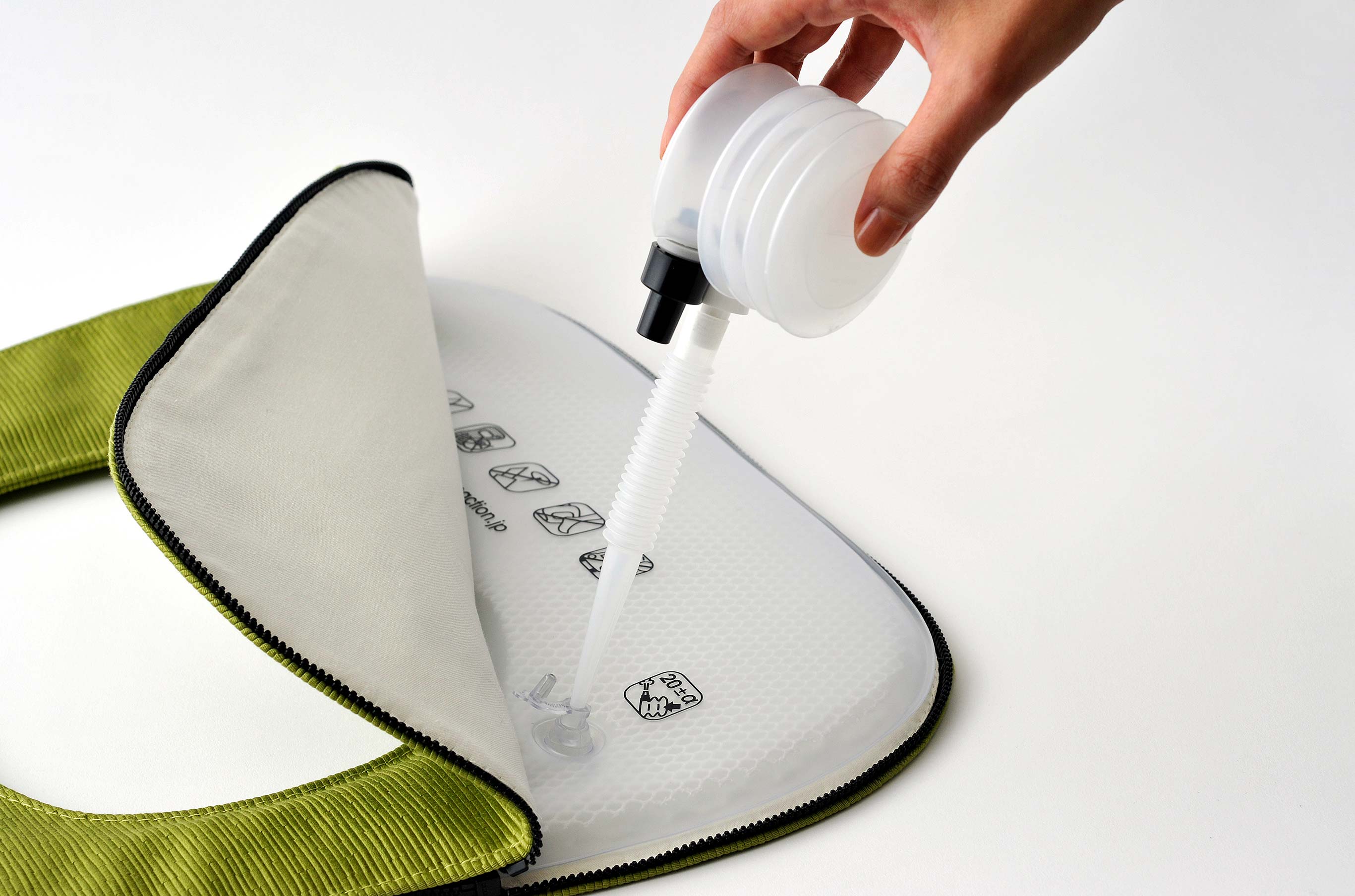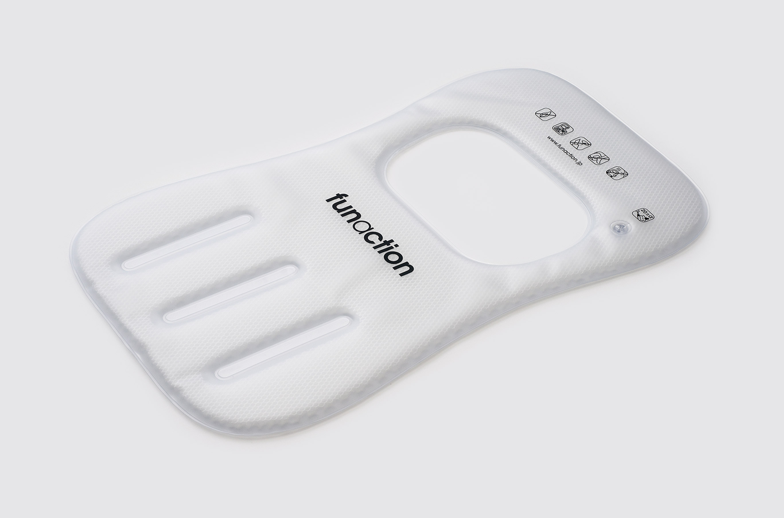 It is a “functional cushion” that supports the lower back with moving air to maintain the correct sitting posture and provide comfort. The simple act of sitting creates the necessary bulge to support the lower back. For the fabric, we collaborated with Christian Fischbach (FISBA, Japan) and used 100% recycled plastic bottle fabric “Benu”.