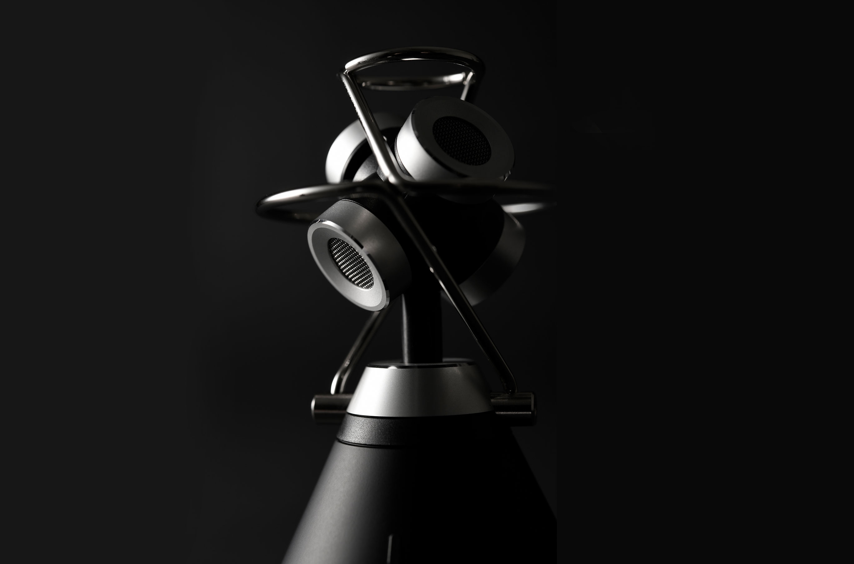 360°全方向の音を最適に収録するアンビソニックス録音の為に、出来る限り音を遮らない円錐形の台座、2本のワイヤーのみで4つのマイクを衝撃から守る為に構成されたマイクガード。その全てが機能からダイレクトに生み出された。
