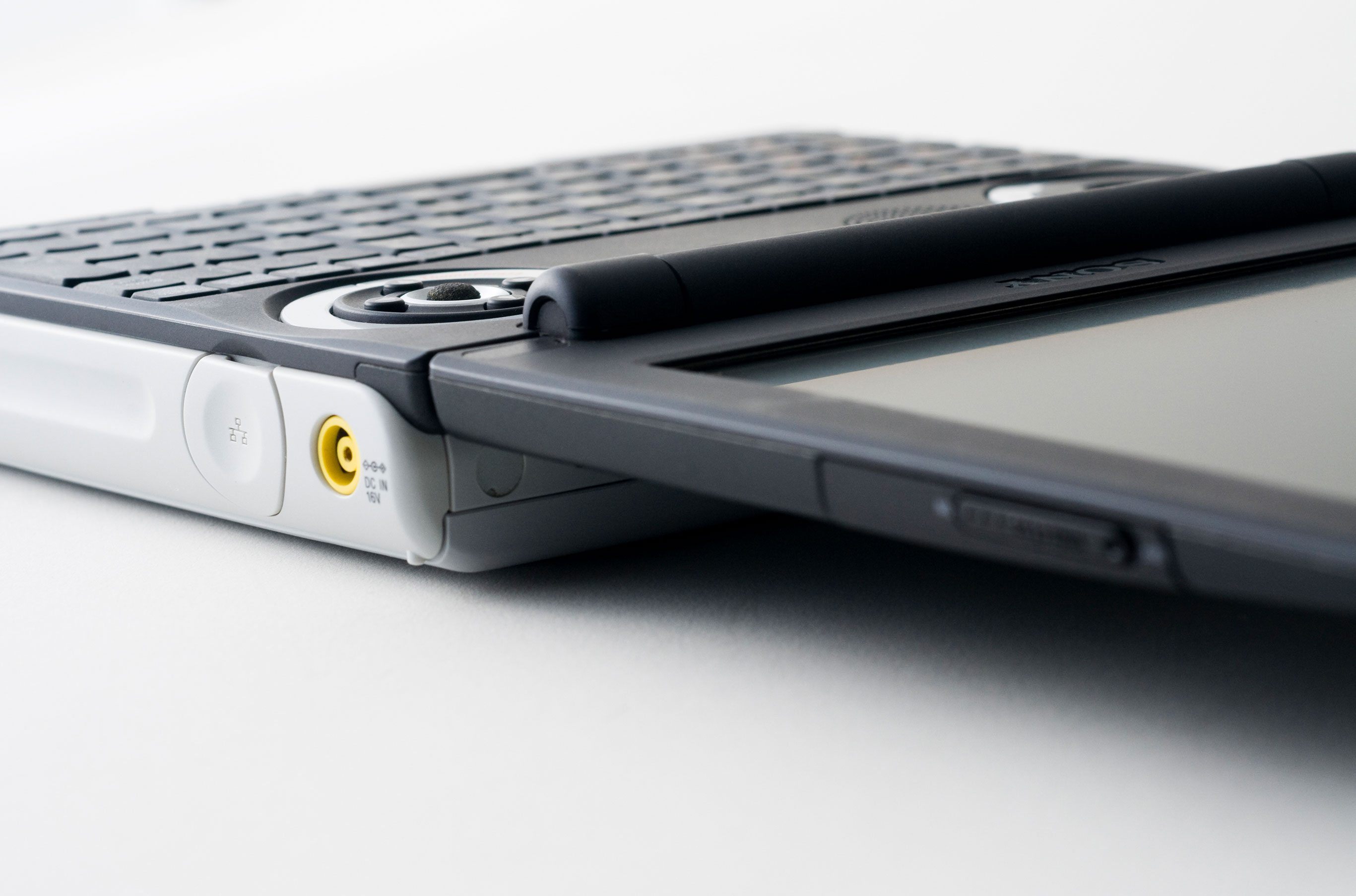 ソニー製ウルトラモバイルPC。デスクトップユース以外にも立って使う状況に配慮し、持って操作する為のフルフラット、“一枚板コンセプト”を提案。ミニチュアのパソコンではなく、小さいからこその必然的な在り方を形にした。